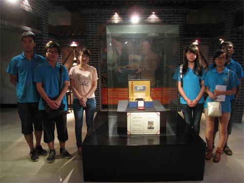 在询问了酒厂的工作人员后,我们了解到芮城原是八仙之一吕洞宾的故乡,这也是酒厂名字的由来,1979年建厂为国营企业,1999年转为私营酒厂。酒厂一直遵循道家文化。酿酒所用的水皆引自龙泉,因为水好酒才好。酒以玉米、高粱为原材料,经粉碎后加水发酵制成。酒厂的工作人员还自豪的告诉我们,酒厂生产的“1208窖藏仙酒”被送入国家博物馆做珍藏,同时酒厂的酒还远销台湾、韩国,影响力很大。完美的流水线是酒业生产保障,辛勤的员工是企业发展的动力,在参观完全封闭生产车间后,我们明白乡镇企业建设已初具规模,新农村建设的脚步已经印在中国广袤的土地上。现酒业有100余正式工人,在酒业生产的淡季依然再有序生产,强大的销售网潜移默化的推动着酒业的扩建——计划来年将拥有400余用于生产的正式员工,并将酒窖移于山洞中(美酒出于原汁原味,佳酿甚需储藏)。有幸我们品尝到佳酿,珍藏多年的陈酿被斟而酌,美酒余香回味无穷,酒香渗透在我们整个的参观过程。仅能用合影留念来记录我们此次之行。