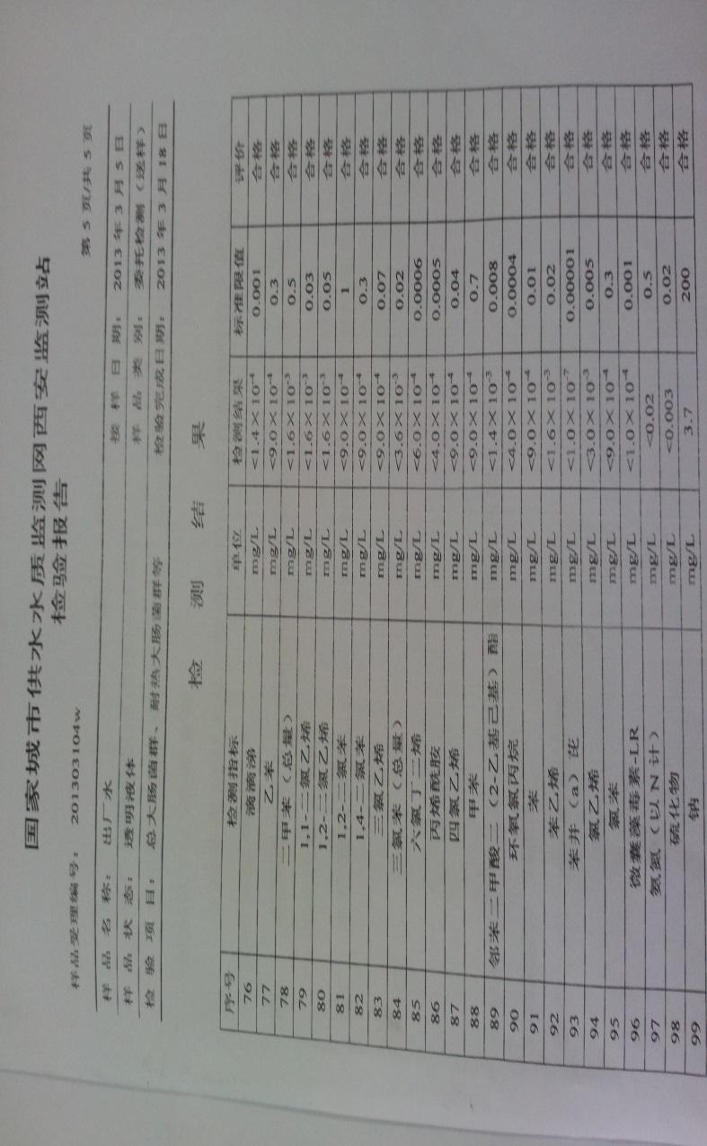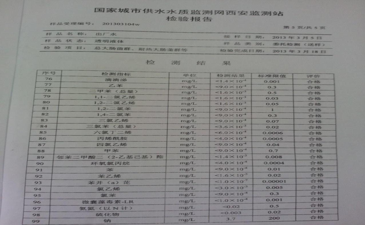 2013年7月18号,我们开始了第二次会议,并对当天任务进行了合理安排,联系好户县自来水管理处后,我们兴致勃勃地出发了。大雨并没有打击大家的热情,我们找到了以为办公室向女士。向女士热情地为我们解答了关于水质的相关问题,还给我们看了一份国家城市供水水质监测网西安监测站检测报告,让我们大开眼见,了解了户县水质各项检测指标,对水质划分标准及户县供水水质合格标准有了深入的了解。