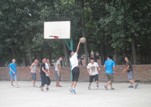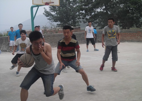 下午5时,长安大学建工学院赴宜阳暑期实践队与马道学校之间的篮球友谊赛如期举行。两队的队名分别为支教队与马道队。在赛前,担任裁判的马道学校冯向辉老师着重强调文明打球。随后,裁判的哨声响起,高高抛起的篮球宣告比赛正式拉开帷幕,同时点燃了本次篮球赛的激情。各队队员实力相当,不分伯仲,双方抢球,防守,进攻,各队员之间的默契传球,完美配合赢得了全场喝彩。由马道村村民,马道学生及其余实践队队员组成的啦啦队的加油呐喊声响彻整个操场。比赛过程中实践队领队老师与马道学校校长为队员们送上矿泉水,以表对队员的关心。整场比赛坚持友谊第一,比赛第二的原则,在激烈的比赛中不乏互助的和谐。