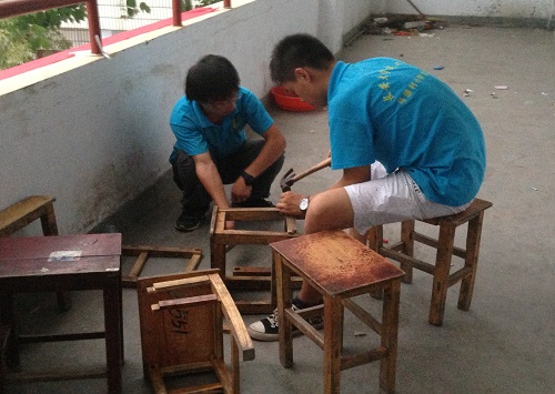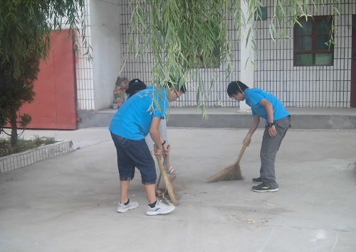 上课期间,支教队员教孩子们一些基础课程,如语文,数学,英语等,为他们打好今后学习的基础。同时我们还开设了文学以及自然科学等方面的知识,如社会,书法,生物,实验等课程,从而提高他们的文学修养、拓展他们的视野,让他们了解到世界的发展和变化。此外还有朗诵课,这门课程不仅让孩子们克服胆怯和害羞,也在一定程度上提高了他们的自信心和文学修养。同时最令人感动的是,支教队员在马腾队长的带领下,积极地打扫庭院卫生,修补破损的桌椅,给孩子们创造一个良好的学习环境。孩子们也热心而积极地加入他们的行列,和支教队员一起进行打扫和修补。这情景温馨而感动,鼓舞着每一位支教队员积极地投入到他们的教学工作中。