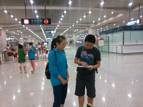 队员在地铁站发放问卷