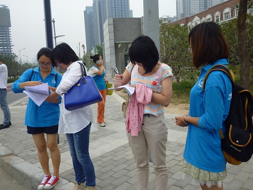 实践队员在街道上发放问卷