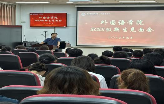 金台夕照,沣东赤穗。9月2日下午,外国语学院2023级本科新生见面会在南校区信远402学术报告厅举行。学院党委书记徐战利﹑执行院长马刚﹑党委副书记贺振航,副院长李长安﹑曹志宏﹑张超,副处级组织员宁静及英语系、日语系、翻译系主任、教师代表、2023级全体新生及部分新生家长出席会议。会议由党委副书记贺振航主持。