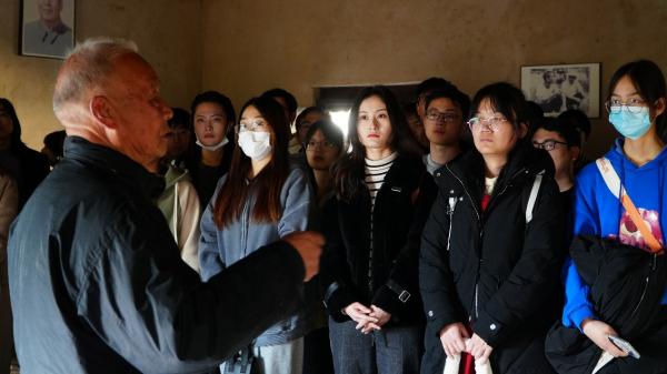 随后,团队来到柳青墓与柳青故居。在柳青墓前,学生代表亲手为柳青同志送上花篮以表悼念,并在刘田民同志的讲解下聆听了柳青的生平事迹,他扎根于人民之中,始终坚持“为人民写作”的精神,创作出了许多反映人民生活的优秀作品;在柳青故居,同学们透过屋内简单的摆设,结合刘田民老人动人的叙事,大家得以“触摸历史”,进一步体会柳青扎根基层、无私奉献的精神品格。