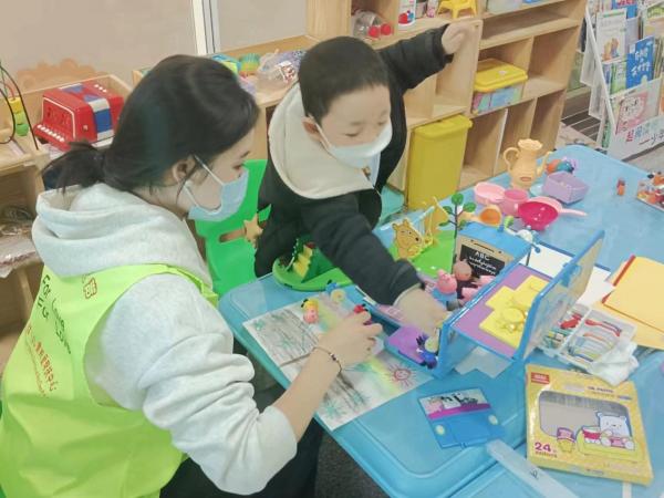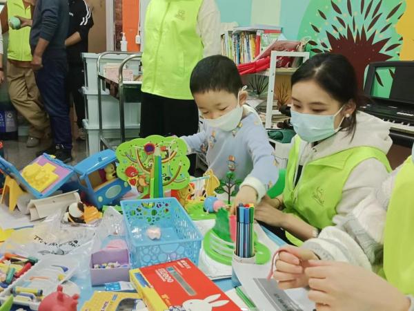 前往活动室的志愿者们则扮演“游戏师”的角色,在活动室陪伴患儿开展“游戏课堂”活动。积木、折纸、粘土、绘画,形式多样的游戏为孩子们带来了快乐,提高了他们的动手能力。折纸星星、积木拼装、角色扮演,有趣的游戏活动使活动室内外洋溢着快乐的气息。