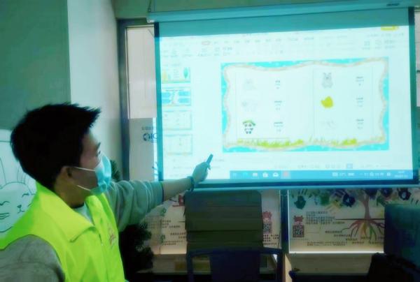 游戏之余,志愿团队利用外语专业优势,开设医院临时课堂,对患儿们进行简单的英语教学和日语启蒙。担任英语教学的志愿者们根据患儿年龄特点,事先准备了课件并彩印了学习资料。他们从颜色、水果、动物等日常生活事物入手,进行了简单的单词教学,激发小朋友们的英语学习兴趣,为他们日后回归正常学习生活提供帮助。担任日语启蒙教学的志愿者们,则从简单的日常用语入手,进行跟读学习,对小朋友们进行语言启蒙,提高他们对新鲜事物、新知识的接收能力,促进他们的成长发展。