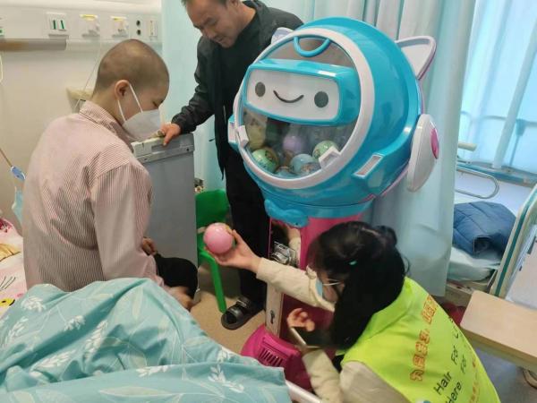 前往病区的志愿者们为患儿分发图书、配送玩具和物资,亲切问候关心患儿,给予他们关爱与陪护。服务过程中志愿者们坚守服务准则,不过分询问患儿病情,不打探患儿家庭隐私,帮助他们树立信心,让他们的心灵得到温暖。