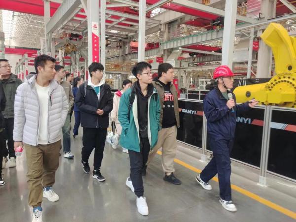 11月13日,电气学院辅导员王凯带队电气和能动等专业研究生前往全球工程机械龙头企业三一集团旗下的三一智装智能制造产业园,了解面向生产行业的重型装备制造产品研发和生产服务工作。重装事业部的电控工程师周星宇和算法工程师刘京、矿车研究院冯园刚以及装配涂装工作中心主任雷壮向来访师生分享了工作经验,并鼓励大家将科研课题攻关与社会需要解决的“卡脖子”问题结合起来,将个人职业发展和我国科技发展所面临的第四次工业革命浪潮结合起来。在生产线上,师生了解到三一智装通过数字系统,工人可随时掌握生产动态,所有生产工序全部在系统中完成,生产线将自动化、数字化深度融合,应用视觉识别、自动抓取、多机协同、智能化工艺数据库等技术,大幅提升了生产速度和生产质量。座谈会上,人力资源部部长齐天霸向学生们介绍了公司发展规划和人才需求,欢迎交大学子加入三一集团,为我国智能制造的发展贡献智慧和力量。
