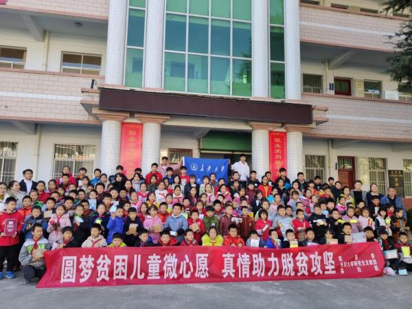 据悉在今年长安大学10月17日“扶贫攻坚,携手同行”全国扶贫日主题活动中,长安大学研究生支教团通过多种方式向服务学校贫困学生征集微心愿。学校有关部门高度重视、精心安排,组织全校师生积极认领,活动取得了较好的社会反响,同时积极通过新媒体平台和网络渠道发布认领信息,引导长安大学在校师生广泛关注和参与活动。截止2019年12月,总计完成贫困学生、留守儿童微心愿564份,价值约3万余元,所征集微心愿百分之百完成。同时我校支教服务学校留坝县江口镇中心小学、江口中学、玉皇庙小学,商南县富水镇初级中学、城关第七小学也在各学校举办了捐赠仪式。