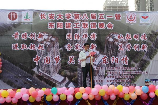 4月29日晚7时,由西安世融有限公司、浙江东阳建工集团西安分公司和共青团长安大学委员会主办,学生社团联合会、支农志愿者协会联合承办的庆“五一”工地义演暨东阳建工集团联谊晚会在东阳建工工地盛大举行。世融集团副总裁常福林、集团总监郑倩、东阳建工集团西安分公司总经理孔成浪、蔡家村村长卢志发、东阳建工集团经营部副总经理厉忠仁,我校校团委副书记张永、校团委社团与文体部副主任张红与工地近800余工友一起观看了晚会。