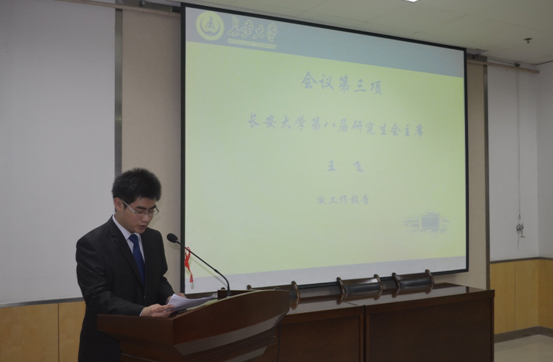 研究生会主席王飞做工作报告