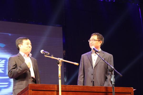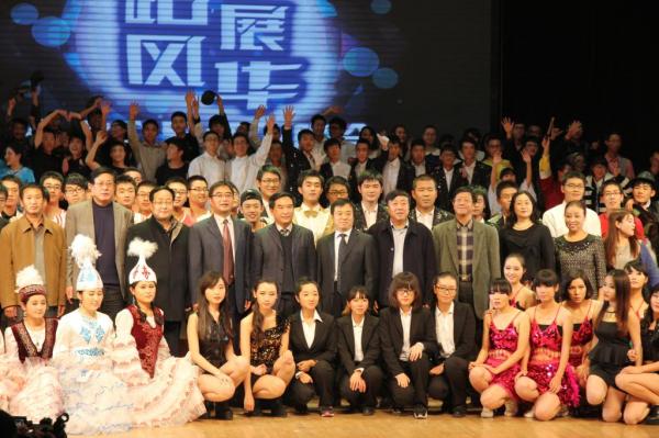 正当主持人与观众互动,期许明星献艺之时,在现场神秘灯光、音乐的配合下,学院院长谢永利和党委书记田新民闪亮登场,赢得了在场师生的热烈欢呼!两位领导为大家续演了精彩的相声。精彩的表演赢得了现场的阵阵掌声,将整场晚会的气氛推向了高潮。