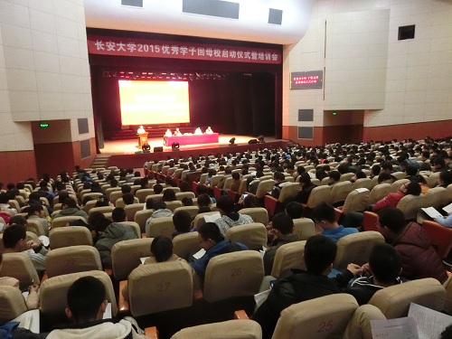 2014年12月22日晚,我校在长安文化艺术中心大礼堂举办长安大学2015寒假“优秀学子回母校”启动仪式暨培训大会。校团委副书记张侠、招生办全体老师和1400余名志愿者参加了本次启动仪式。