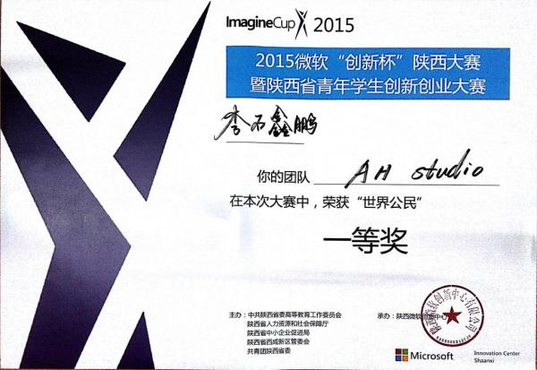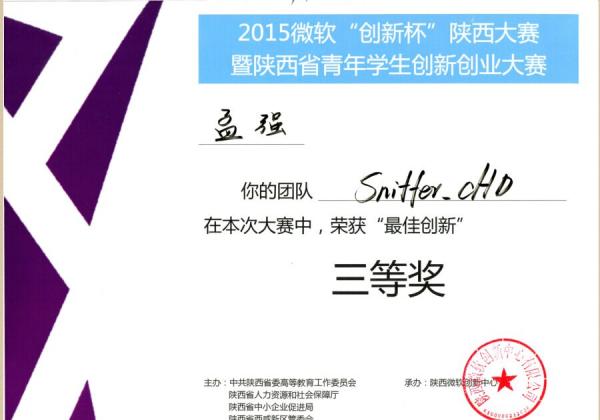 2015年4月2日,由省委高教工委、团省委、省人社厅、省中小企业局、西咸新区管委会联合主办的2015年微软“创新杯”陕西大赛暨陕西省青年学生创新创业大赛颁奖典礼在西咸新区沣西新城举办。我校学生李石鑫鹏和孟强的参赛作品《Aphoto Series》、《实时交通信息发布应用系统》分获“世界公民”类一等奖和“最佳创新”类三等奖;我校被授予“优秀组织奖”荣誉称号。一等奖作品将代表陕西省参加全国半决赛。