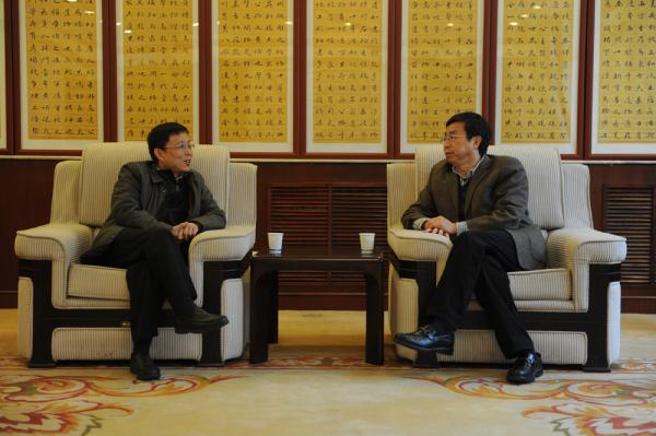 校党委副书记白华与团中央学校部副部长李骥交谈