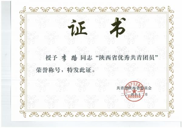 资源学院学生李路荣获“陕西省优秀共青团员”