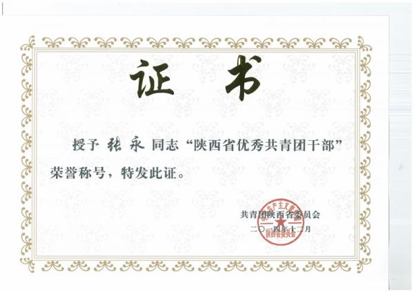 校团委副书记张永荣获“陕西省优秀共青团干部”
