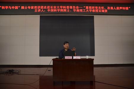 2015年5月26日下午,“科学与中国”院士专家巡讲团走进长安大学科普报告会在我校渭水校区会议中心报告厅举办。中国科学院院士、建筑技术科学专家、华南理工大学博士生导师吴硕贤教授应邀为我校师生作了题为“重视听觉关怀,改善人居声环境”的专题报告。校党委副书记白华出席报告会并亲切会见吴硕贤院士。报告会由建筑学院院长武联教授主持。