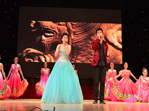 大学生合唱团以慷慨激昂的合唱《中国之梦》拉开晚会的序幕。优美动人的民乐合奏《迎宾曲》、悠扬动听的手风琴合奏《拉德斯基进行曲》;翩跹的舞姿,搭上欢快的乐曲,舞蹈《雨中花》、《青春,青春》展现了大学生绚丽的青春风采;朗诵《祖国,我用青春的名义为你歌唱》铿锵有力,呐喊出时代之声,让火热的青春与祖国紧密同行;魔术《梦幻》技艺精湛,赢得现场阵阵掌声;歌曲《勇往直前》旋律高昂,演唱者声线动听,引得现场观众热血沸腾;刚柔并济的健美操表演;艺术团指导教师吴鹏演唱的歌曲《大西北的鼓声》粗犷嘹亮;晚会节目多样多彩,高潮迭起。艺术团指导教师邱玥、张红带来的古筝重奏《将军令》节奏明快,曲调流畅,筝音声声,声声传情,更是将晚会推向又一个高潮。晚会在艺术团管乐团《Hey Judy》和《龙舌兰》中落下帷幕。