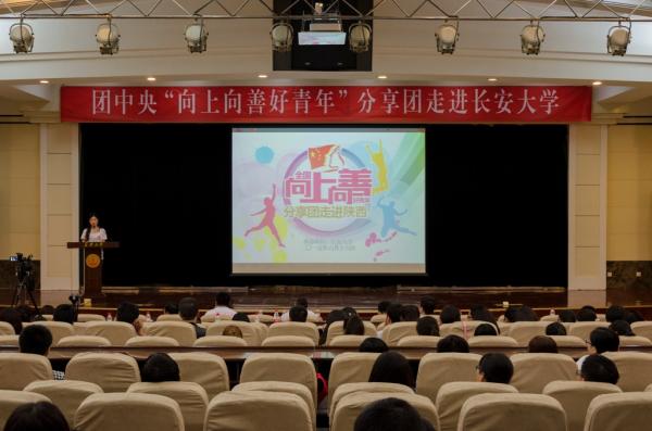 为充分发挥先锋模范的示范引领作用,引导广大青年学生见贤思齐、崇德向善,6月16日下午,团中央“全国向上向善好青年”分享团走进我校,在校本部北院学术报告厅举行了分享会。荣获2015年团中央“全国向上向善好青年”荣誉的丁赟、孟维、王庆新、顾雷雷四位杰出青年典型为广大青年分享了成长故事和感人事迹。团中央宣传部新媒体副处长赵浩泽、思想教育处干部高亮,共青团陕西省委副书记单舒平、宣传部部长王峰、副部长李夏颖等出席活动,省内各市区团委、县区团委、部分高校、企业等单位团委的有关同志及我校学生代表参与了本次活动。