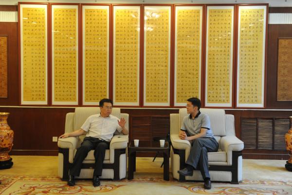 校党委副书记白华与团中央宣传部新媒体副处长赵浩泽交谈
