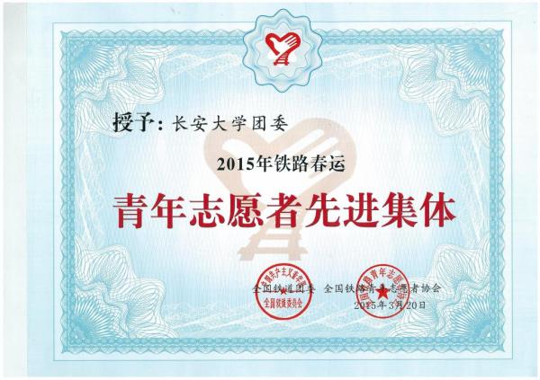 我校团委荣获“2015年铁路春运青年志愿者先进集体”