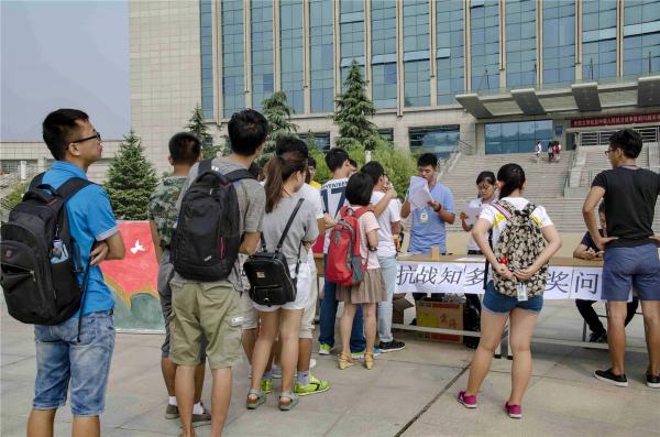 在为期三天的展览中,我校师生积极参观,图片展出期间还举办了形式多样的答题互动环节,答对抗战相关知识问题的同学可获得由校团委制作的精美抗战纪念明信片一套,三天时间累计送出一千余套,展出现场反响强烈。