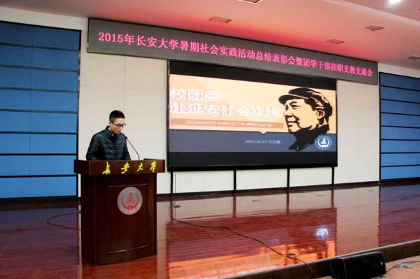 10月27日,2015年暑期社会实践活动总结表彰会暨团学干部基层挂职支教交流会在渭水校区行政楼会议中心举行,校党委副书记白华出席并作重要讲话,会议由校团委副书记张永主持。