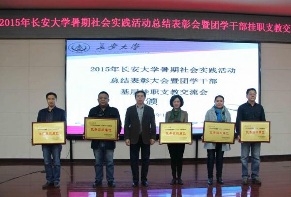学工部部长兼校团委书记张骞文宣读《2015年大学生暑期社会实践活动表彰决定》。校党委副书记白华为社会实践优秀组织单位颁奖;党委组织部、宣传部领导为社会实践优秀指导教师代表颁奖;学工部、渭水校区办、教务处领导为社会实践优秀团队、优秀成果、先进个人、优秀宣传员代表颁奖。