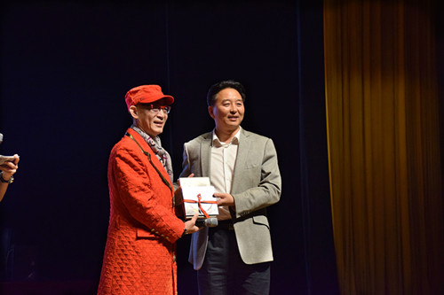 讲座开始前,校长助理朱杰君代表学校向章金莱先生赠送长安大学纪念品。