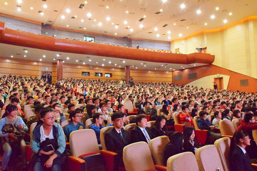 章金莱先生与我校学子进行了亲切互动。整个讲座中,章先生语言风趣幽默,感情真实自然,讲座现场观众持续热情高涨。
