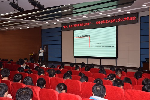 咀嚼青春之酸甜,捕捉成长之微末。2015年10月9日晚,著名畅销书作家卢思浩校园分享会在渭水校区行政楼会议厅举行。长安大学校长助理彪晓红出席分享会。