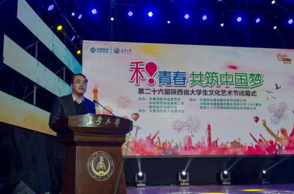 2015年12月1日下午,第二十六届陕西省大学生文化艺术节闭幕式在我校渭水校区长安文化艺术中心大礼堂举行。共青团陕西省委员会副书记徐永胜,我校党委副书记白华,中国移动陕西公司副总经理蒋文隆,全国青联常委、我校校友、西安三人行传媒网络科技股份有限公司总裁钱俊冬,陕西省学联主席朱佳鸿出席活动。学工部、校团委等部门负责人与我校1200多名学生代表参加了活动。
