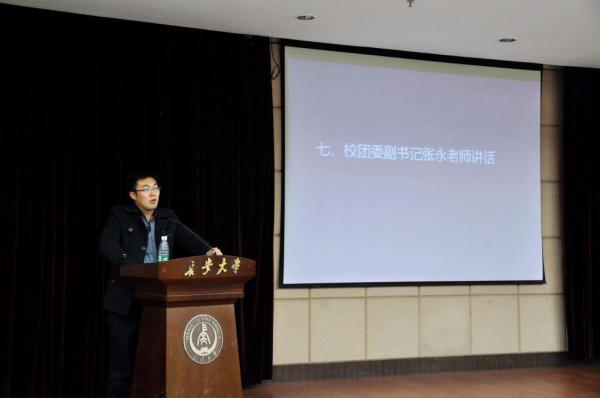 校团委副书记张永在会上讲话。张永老师首先阐述了长安大学团学组织新媒体联盟的成立暨先锋网络文化工作室成立的意义、宗旨以及管理体制。他指出了网络平台的重要性,新媒体宣传工作在青年思想引领方面应担负重要责任和作用,成立校级组织及各学院网络平台的联盟,有助于宣传工作,整合资源,形成合力,提升品牌,增强影响力。他还强调,先锋网络文化工作室要学会以资源和人力作支撑,充分利用资源和技术;各院级组织要积极共享资源,互通信息,相互协作,积极发声。最后,张永老师希望各理事单位的成员组织多交流工作,进一步研究联盟的运行体制,并以先锋网络文化工作室为工作平台,全面促进团学网络新媒体宣传工作。