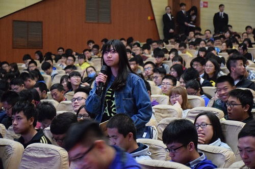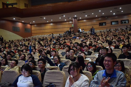 最后曹林与我校学子进行了亲切互动。整个讲座中,他语言风趣幽默,感情真挚自然,讲座现场观众持续热情高涨。