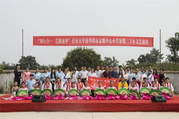践行核心价值观,青春共筑中国梦。本次慰问演出是在团中央暑期文化科技卫生“三下乡”社会实践活动的部署下,是由我校文艺骨干组建的“知行合一 艺路逐梦”长安大学赴陕西省华阴市暑期社会实践队进行的三场文艺演出中的一场。除本场外,在华阴市孟塬中心小学、华阴市黄河社区分别进行了文艺惠民演出,共计近两千人次到场观看,得到了渭南电视台、华阴电视台等社会媒体的关注报道,取得了广泛的社会影响与肯定。与此同时,实践队还组织参观了68331部队团史馆、连队营地,体验了部队生活;开展了荣誉军人爱国主义报告会,聆听了张顺京、邢步宗、王树良三位荣誉军人的光荣事迹;观看了中国非物质文化遗产——华阴老腔表演,并与老腔艺人们进行了艺术交流;游览了西岳庙、仙峪风景区,感受了当地的风土人情,得到了当地群众的热情欢迎。