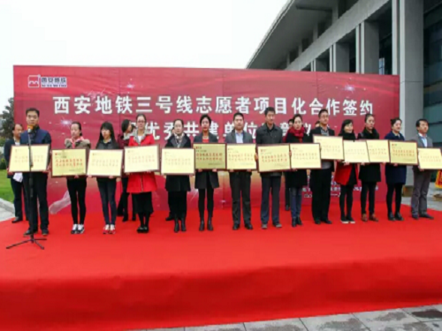 伴随着地铁三号线的开通,新一批的青年志愿者加入到地铁志愿服务中来,在表彰以往的基础上,为保障西安地铁三号线志愿服务质量,共青团西安市委、市地铁公司团委与西安3个团区委、6所高校签订了三号线志愿者服务项目合作协议,为地铁三号线6个重点车站进行点对点志愿服务。