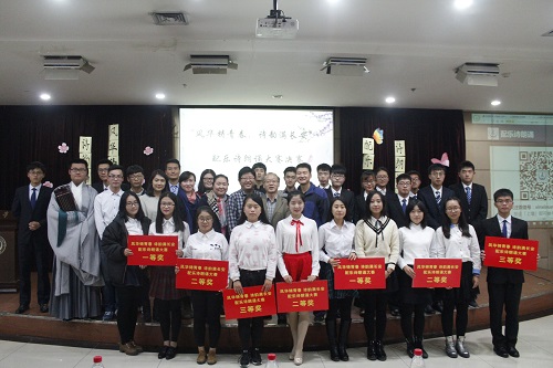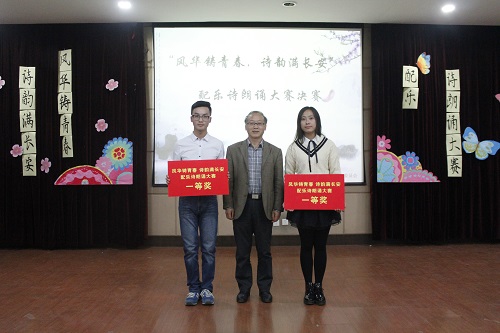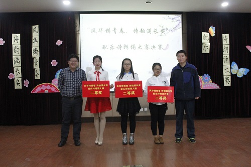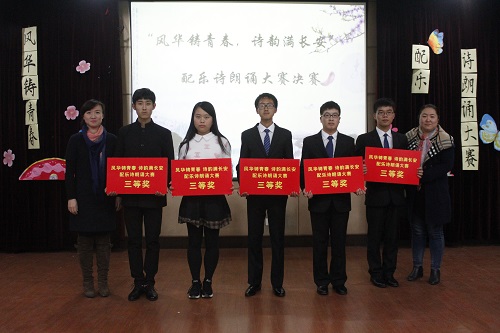比赛中选手们围绕“故乡情”、“祖国情”、“长大梦”、“中国梦”等话题,以现代诗形式,配以画面感强烈的PPT以及富有渲染力的音乐进行朗诵。标准流利的普通话,慷慨激昂的语调,得体大方的肢体语言,获得了观众们的阵阵掌声。经过一个半小时的激烈角逐,各个奖项尘埃落定,比赛共决出一等奖两名,二等奖三名,三等奖五名。