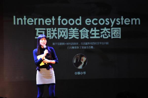 新浪陕西鲜城西安事业部总监苏瑞、美食编辑袁伟从“互联网+美食”的角度表达了自己对互联网营销的看法。其中,苏瑞总监从PC端与APP两方面介绍了众多美食如何在信息时代中脱颖而出,以及如何在信息浪潮中传承与发展传统美食。