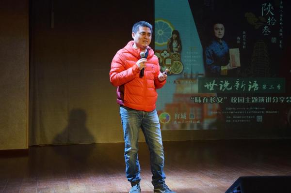 11月27日晚,长安大学《世说新语》校园主题演讲分享会第二季在校本部东院教学区研究生文化艺术活动中心顺利举行。陕拾叁品牌创始人海滨、新浪陕西鲜城事业部总监苏瑞、星巴克咖啡星级咖啡师Judy作为本期演讲人,以“味在长安”为主题分别进行了演讲分享。校团委书记张永、校团委副书记姬国斌出席活动,校“青马”第九期研究生骨干培训班全体学员与广大青年学子近500人参加了此次活动。