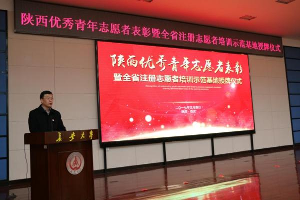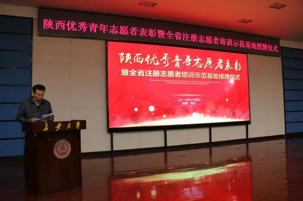 陕西优秀青年志愿者表彰大会暨全省注册志愿者培训示范基地授牌仪式在我校举行