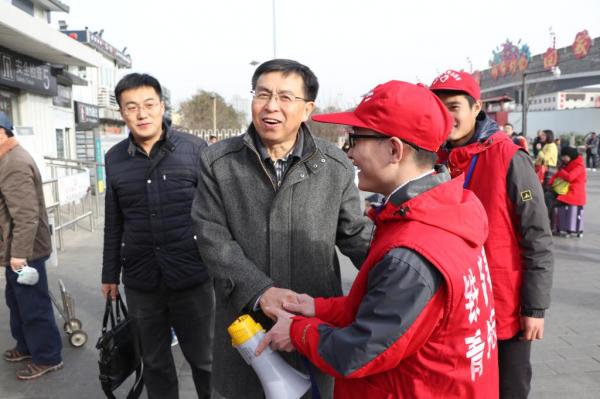 2017年1月26日下午,共青团陕西省委书记段小龙、团省委党组成员、省少先队总辅导员赵大胜,我校党委副书记白华一行到西安火车站看望并慰问了正在开展春运志愿服务的我校青年志愿者。