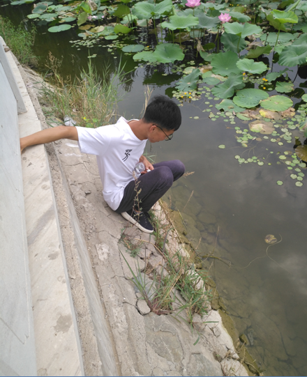 7月18日,队伍骑行五十公里,前往小西湖和阅海湖。小西湖与阅海湖皆为银川市区重要的观景、绿化、灌溉湖泊,引黄河水注入,水生动植物皆繁茂。在小西湖调研时,由于护坡与水位高度差较大,队伍采水遇到困难。最终一名队员将身体俯下,其余队员相互拉持,成功取到水样。在之后的调研中,队伍多次遇到困难,都在共同努力下得到解决。