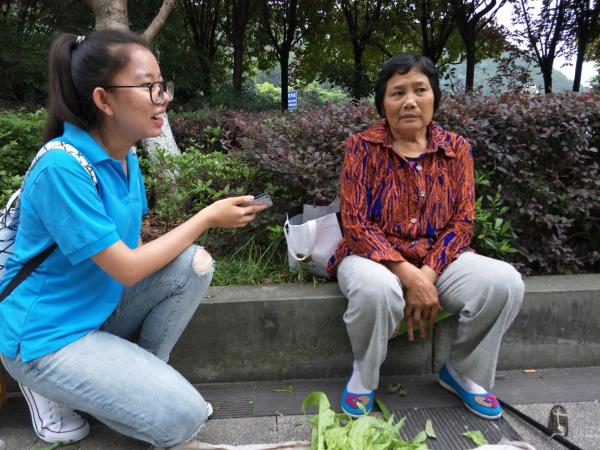 “沿波讨源古阆中,积水成渊新市容”实践队前往阆中市滕王阁山脚下的流动菜市场进行采访调研,并对摊贩聚集地附近的居民进行采访。