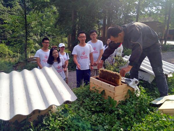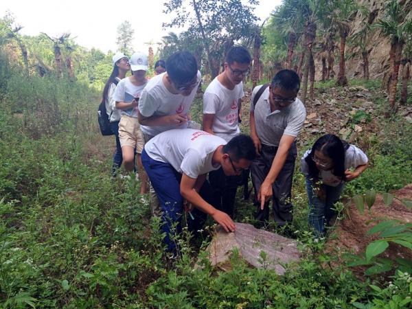 二道河村村志撰写人周凯老师从历史渊源、民俗文化、产业发展现状等方面给大家详细介绍了宁强县以及二道河村的基本情况。二道河村村委书记彭波带领实践队一行驱车十余里来到二道河村产业扶贫典范——野山花中峰养殖合作社。通过彭波书记的详细介绍,实践队员们进一步了解到合作社由20户贫困户承包,目前规模还在进一步扩大,有效地带动了贫困户脱贫的速度。之后,周凯老师带领实践队一行参观村内一处重要地质景观——海百合化石发现地,展示了二道河村得天独厚的旅游资源与开发潜力。而后,彭波书记带领实践队员俯瞰二道河村全貌,详细介绍了该村的规划布局和扶贫政策取得的成果。