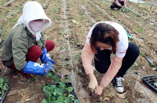 同时实践队也迈进田间地头向种植高原夏菜的农户了解种植情况。冒雨步行十公里,拜访种植高原夏菜的一户户农民,在田间地头的学习更加生动深刻。每一个大棚里都有着一段关于高原夏菜的平凡故事,这正是实践队努力发掘的宝藏。
