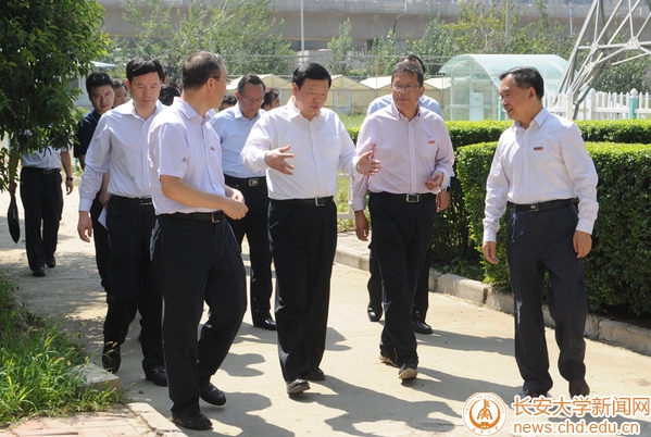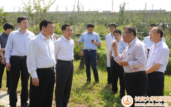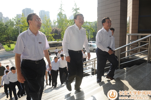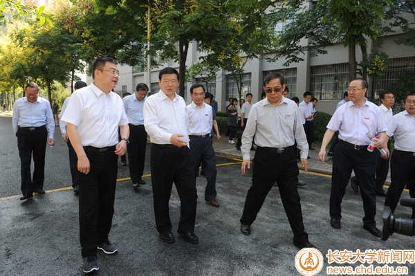 2017年9月13日上午,中共陕西省委书记娄勤俭来到长安大学渭水校区,就“支持‘双一流’建设,服务地方经济社会发展”进行专题调研,重点考察我校科学研究和创新创业情况。陕西省委常委、常务副省长梁桂,省委常委、省委秘书长钱引安以及省委政策研究室、宣传部、高教工委、省发展改革委、教育厅、科技厅、工信厅、人社厅等部门主要负责人参加调研。学校领导杜向民、陈峰等陪同考察,并就有关工作进行了汇报。