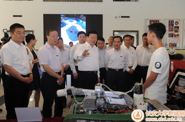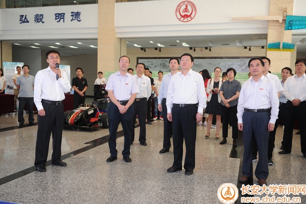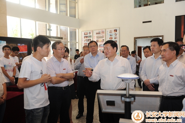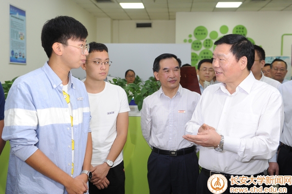 娄勤俭一行先后考察了长安文化艺术中心大学生创新创业作品展区、新型路面技术与加速加载研究平台、人-车-路协同创新研究平台、地下水资源开发与利用研究平台等地,认真听取了有关工作汇报,并与现场师生亲切交流。