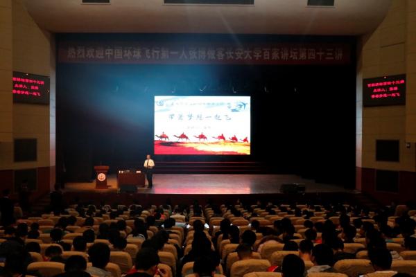 2017年11月23日下午,我校百家讲坛第四十三讲在渭水校区长安文化艺术中心大礼堂举行。中国环球飞行第一人张博作了题为《带着梦想一起飞》的主题报告,校党委副书记白华出席活动,1000余名师生共同聆听了本次报告。
