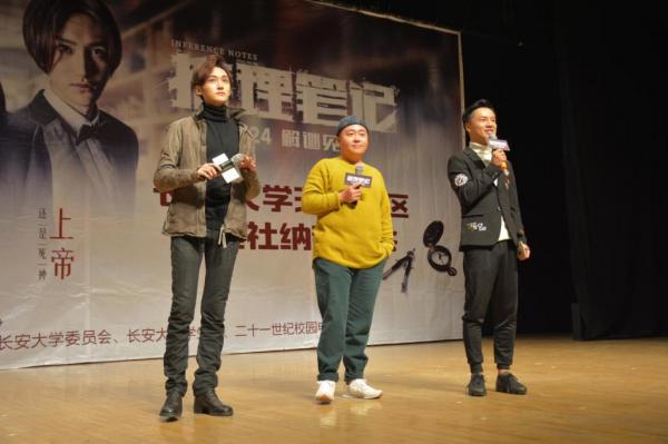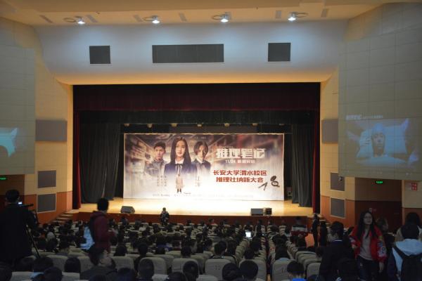 仪式伊始,电影主创人员与全场同学见面,现场气氛热烈,互动活跃。其首先介绍所饰演的影片角色,大致讲述影片内容。随后,现场抽取同学加入“长安大学渭水校区推理社”,进行有关推理类的趣味活动。活动结束后,两位主创与“推理社”的同学合影留念。仪式后期,现场开始电影点映。全场遵守观影纪律,文明观影。电影情节跌宕起伏,引人入胜,同学们对电影作品本身纷纷表示肯定。